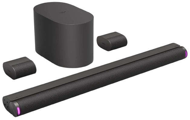 The VIZIO Elevate SE 5.1.2 Soundbar has earned its place on our curated list of top Dolby Atmos soundbars thanks to its innovative design and impressive performance. This model features rotating speaker drivers, a distinctive approach that enhances height effects by directing sound upwards toward the ceiling, creating an immersive audio experience.